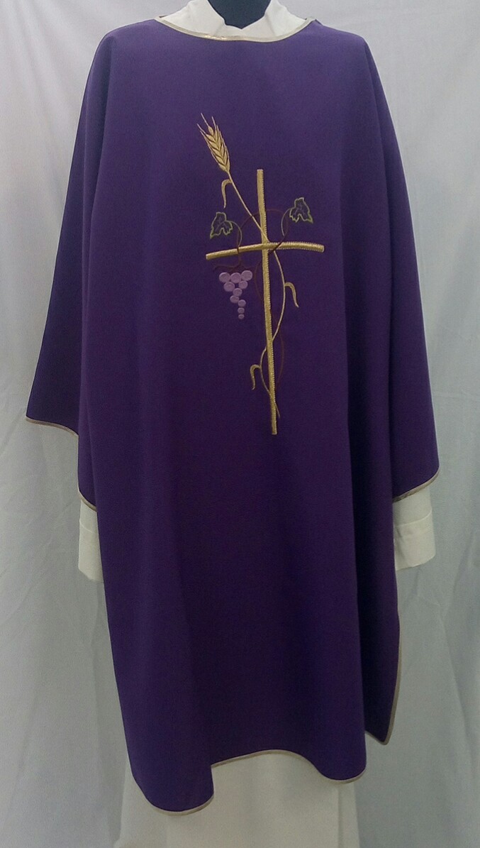 DALMATICA SEMPLICE IN POLIESTERE CON RICAMO DIRETTO CROCE, SPIGA E UVA